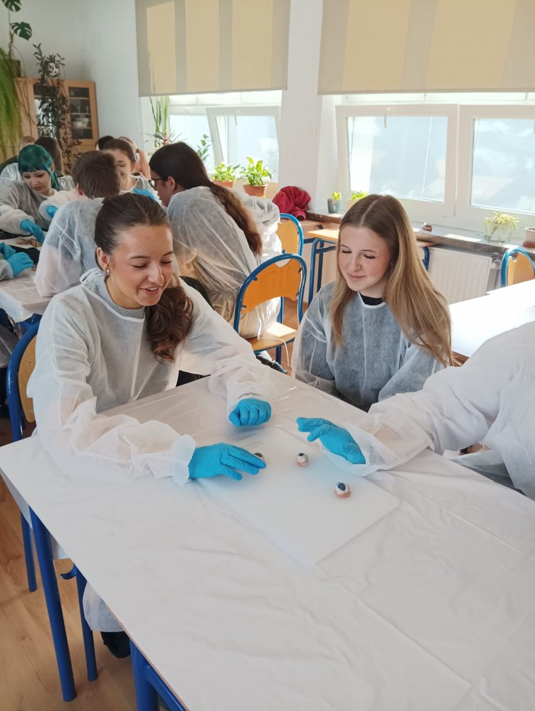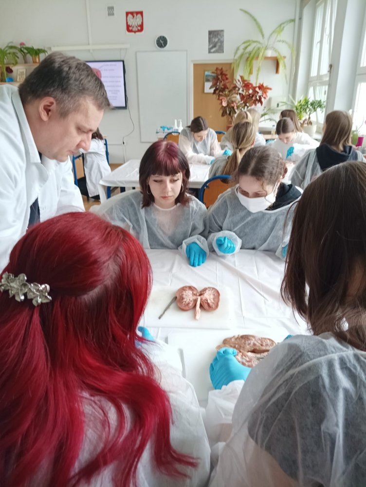 24 kwietnia uczniowie klasy 3PS uczestniczyli w zajęciach z anatomii prowadzonych przez zespół IQuest, na których poznali budowę serca, gałki ocznej oraz nerek; uczniowie przeprowadzili sekcje narządów.
